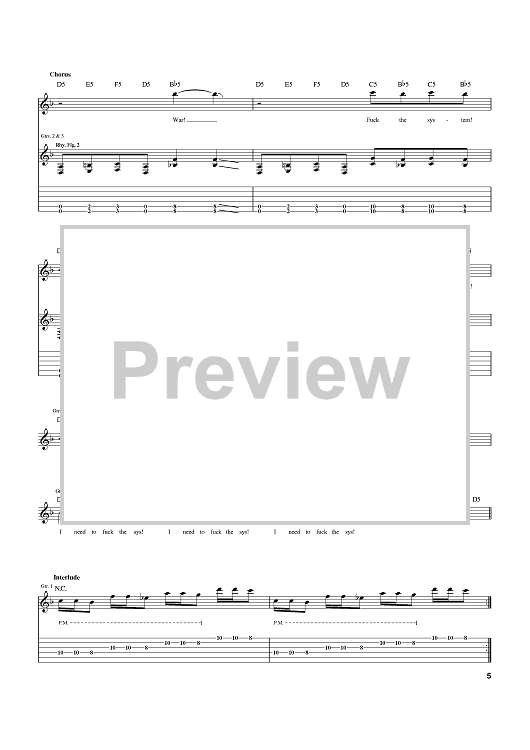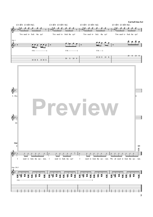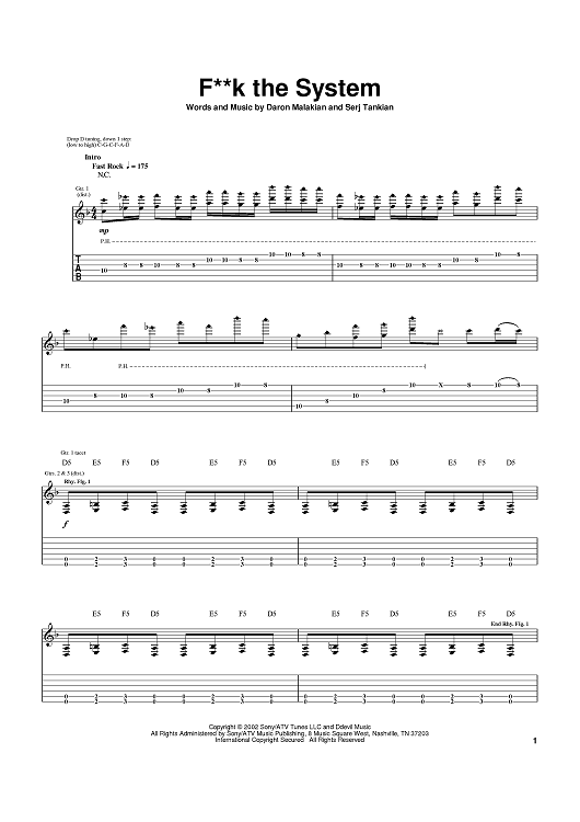 Digital Sheet Music for Fuck The System by Daron Malakian, System Of A Down, Serj Tankian scored for Guitar Tab; id:370641