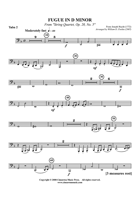 "Fugue in D Minor from "String Quartet, Op. 20 No. 5" - Tuba 2" Sheet Music by Franz Joseph Haydn