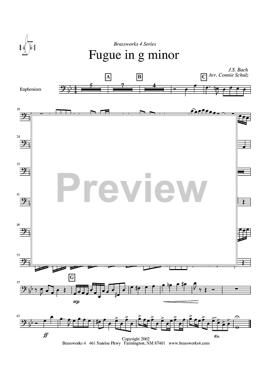 "Fugue in G Minor - Euphonium" Sheet Music by Johann Sebastian Bach