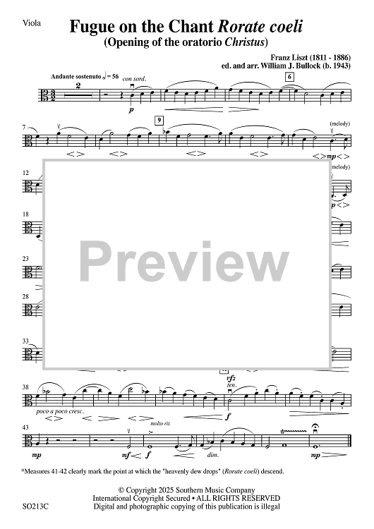 Digital Sheet Music for Fugue on the Chant Rorate coeli - Viola by Franz Liszt, William Bullock scored for String Orchestra; id:507821