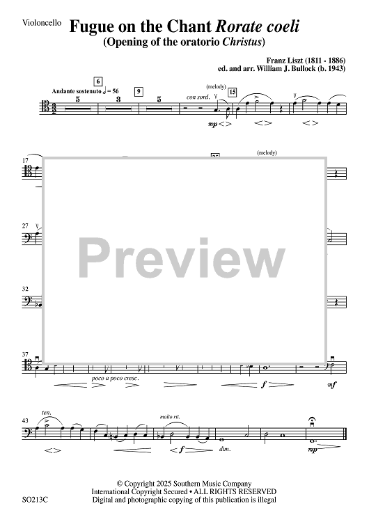Digital Sheet Music for Fugue on the Chant Rorate coeli - Violoncello by Franz Liszt, William Bullock scored for String Orchestra; id:507822