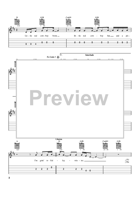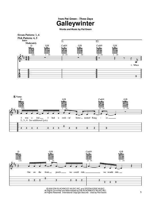 Digital Sheet Music for Galleywinter by Pat Green scored for Easy Guitar Tab; id:372799