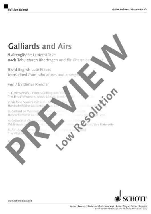Digital Sheet Music for Galliards and Airs by scored for Guitar; id:482628