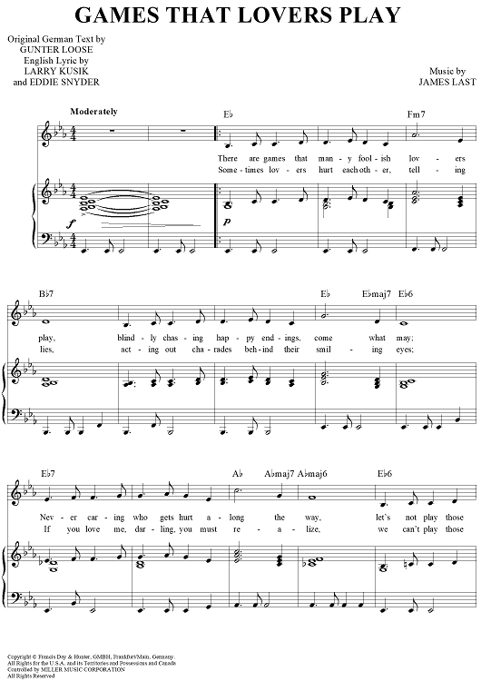 Digital Sheet Music for Games That Lovers Play (Eine Ganze Nacht) by Eddie Snyder, Eddie Fisher, Larry Kusik, James Last, Gunter Loose scored for Piano/Vocal/Chords; id:423108