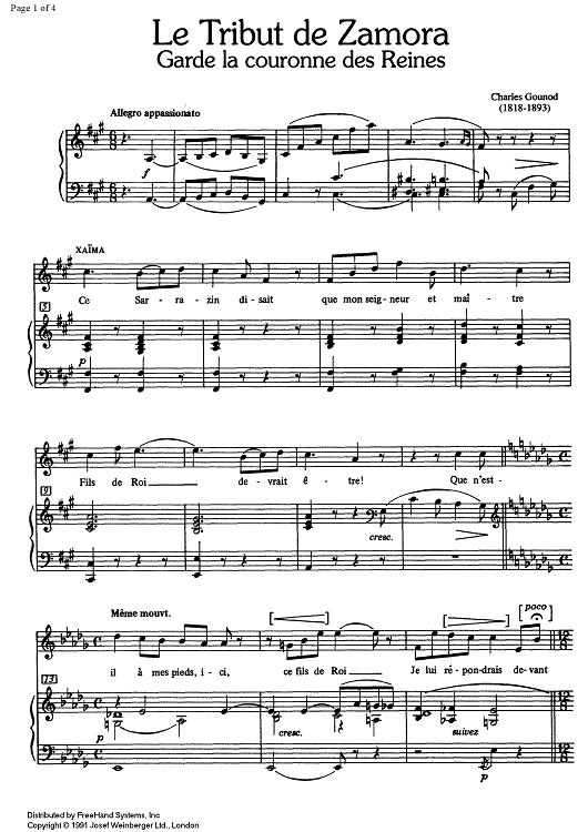 Digital Sheet Music for Garde la couronne des Reines from Le Tribut de Zamora by Charles Gounod scored for Soprano/Piano; id:332343