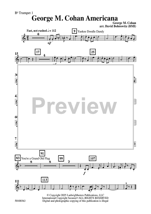 Digital Sheet Music for George M. Cohan Americana - Bb Trumpet 1 by George M Cohan, David Bobrowitz scored for Concert Band; id:509481