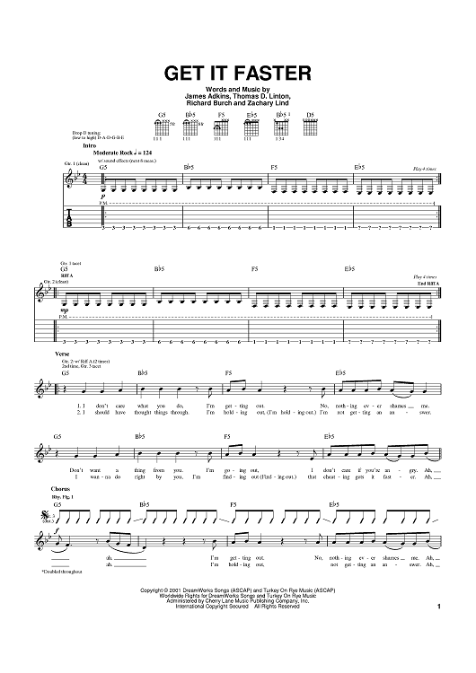 Digital Sheet Music for Get It Faster by James Adkins, Richard Burch, Jimmy Eat World, Tom Linton scored for Guitar Tab; id:369847