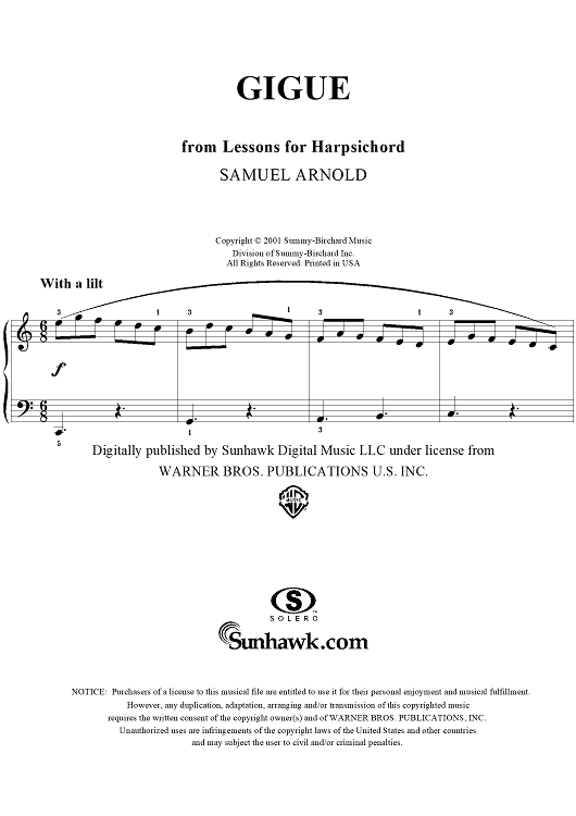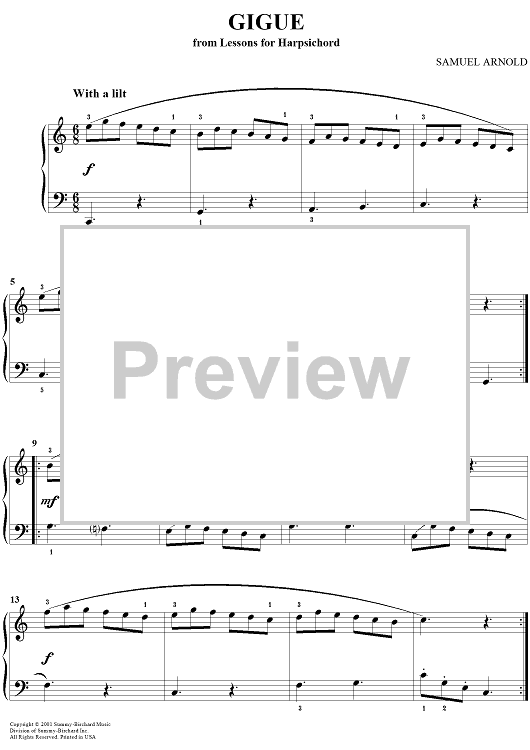 Digital Sheet Music for Gigue by Samuel Arnold scored for Easy Piano; id:289521
