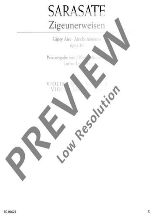 Digital Sheet Music for Gipsy Airs by Martín Melitón Pablo de Sarasate y Navascuez scored for Violin And Piano; id:475008