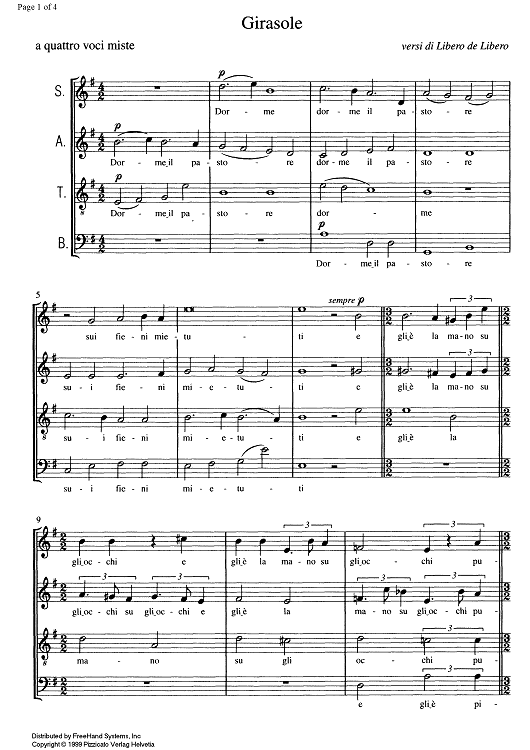 Digital Sheet Music for Girasole by , Vito Levi scored for SATB Choir; id:333745