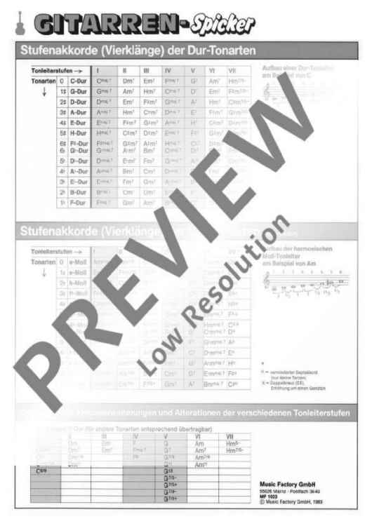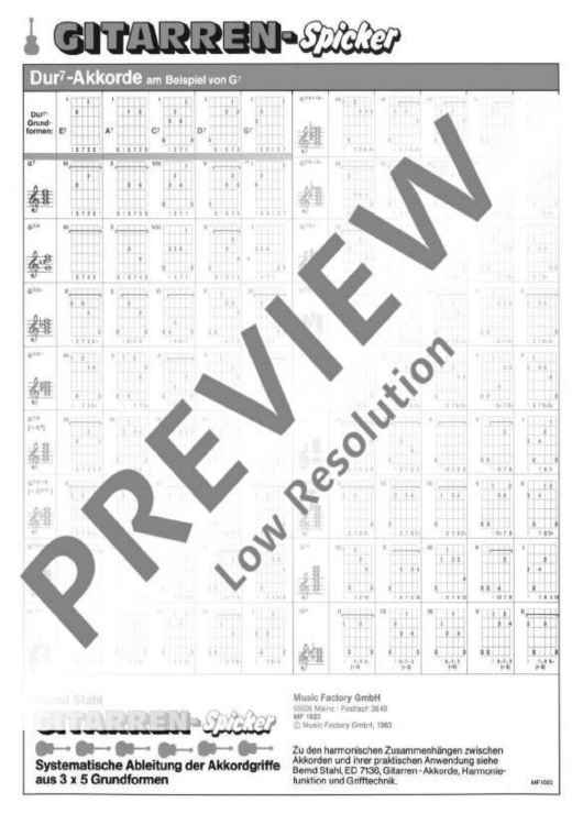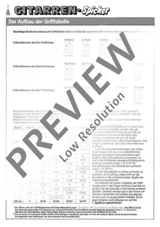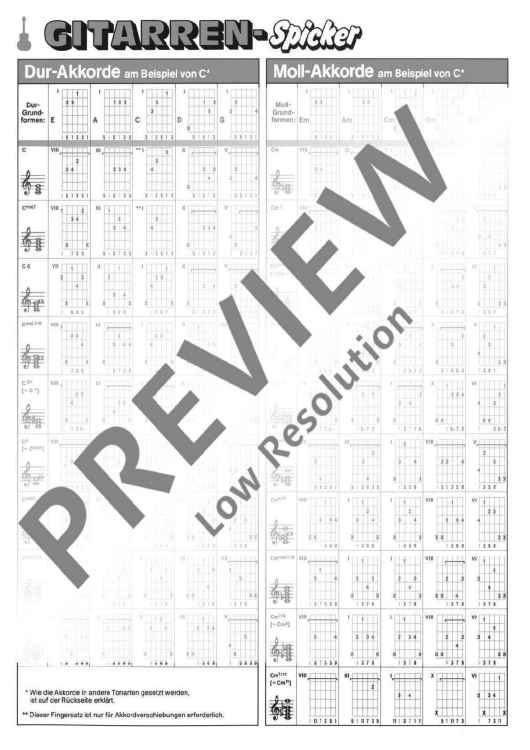 Kennen Sie die Situation: Der Griff für einen selten vorkommenden Akkord fällt einem nicht ein. Hilfestellung erfährt man durch die neuen Spicker. Ein schneller Blick, und schon finden Sie den korrekten Griff - gleich in mehreren Alternativen. Besonders praktisch: Der Spicker ist im Hochformat und auf speziellem festen Papier gedruckt. Damit ist er schnell griffbereit und lange nutzbar.