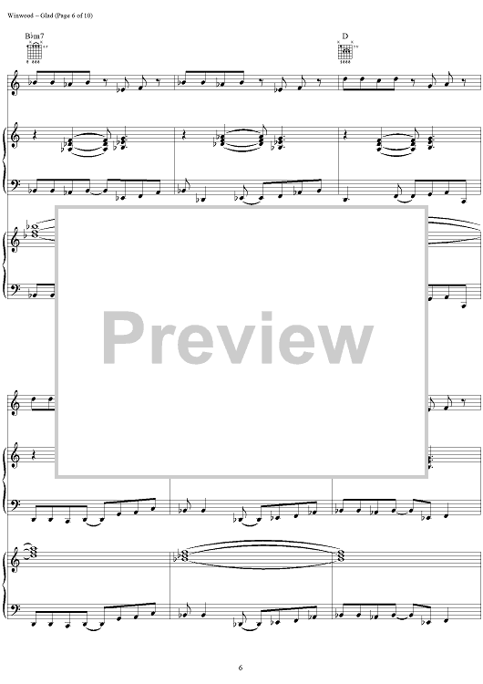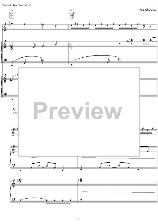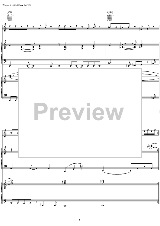 "Glad" Sheet Music by Steve Winwood