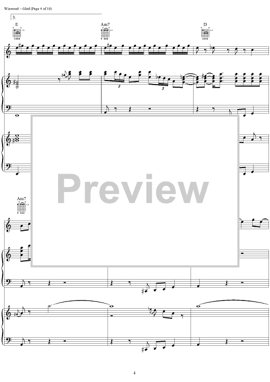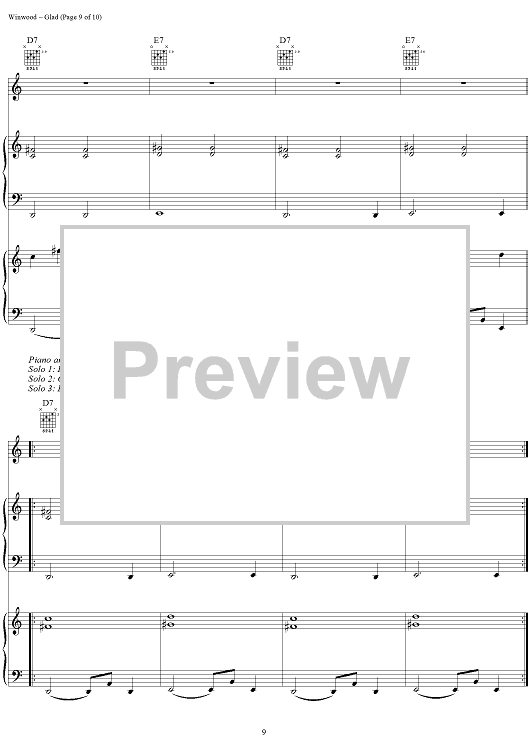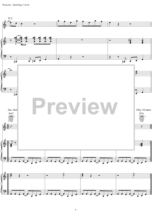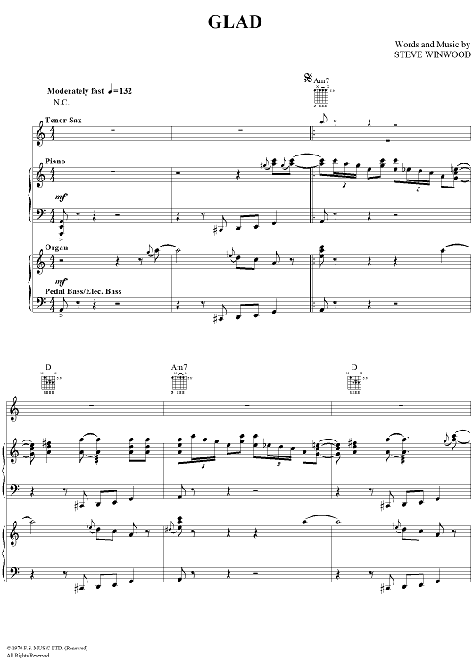 Digital Sheet Music for Glad by Steve Winwood scored for Tenor Saxophone/Piano/Organ/Chords; id:286934