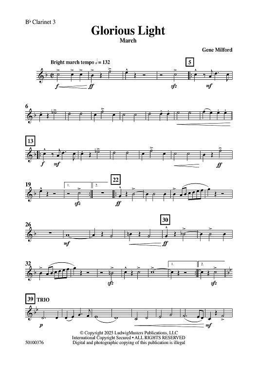 "Glorious Light March - Bb Clarinet 3" Sheet Music by Gene Milford
