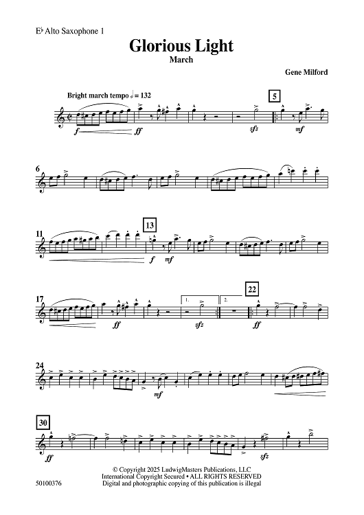 "Glorious Light March - Eb Alto Saxophone 1" Sheet Music by Gene Milford