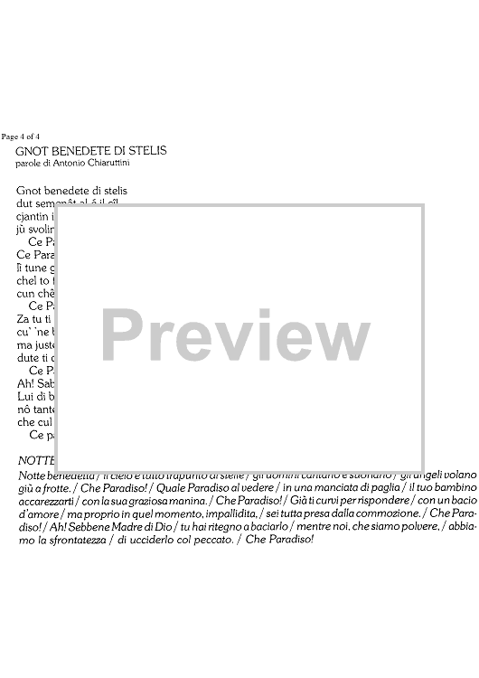 "Gnot benedete di stelis" Sheet Music by Oreste Rosso