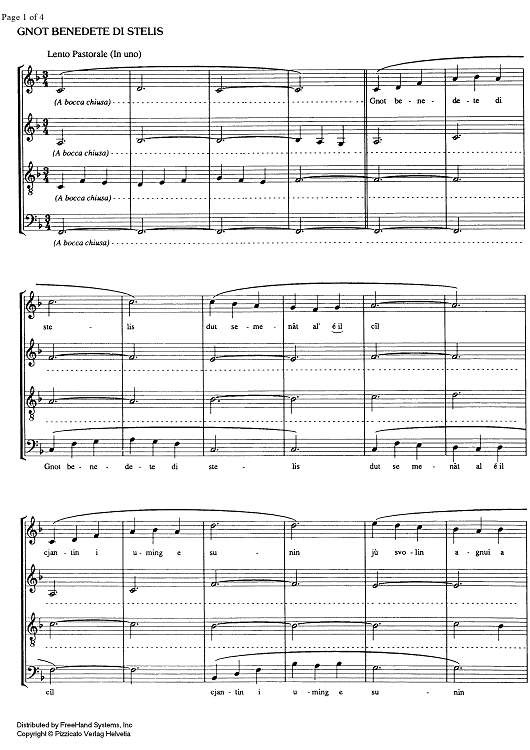 Digital Sheet Music for Gnot benedete di stelis by , Oreste Rosso scored for SATB Choir; id:336427