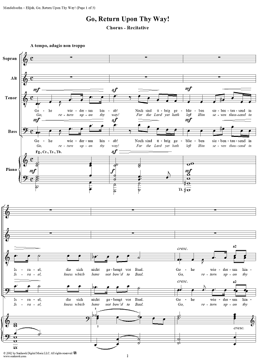 Digital Sheet Music for Go, Return Upon Thy Way! - No. 36 from "Elijah", part 2 by Felix Mendelssohn scored for Vocal Score; id:252241