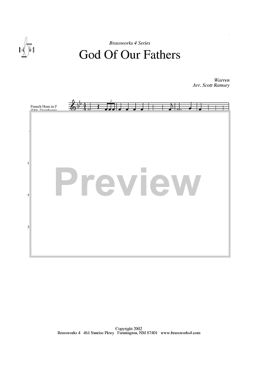 Digital Sheet Music for God of Our Fathers - Horn in F (opt. Trombone) by Scott A. Ramsey, George Warren scored for Brass Quartet; id:318772