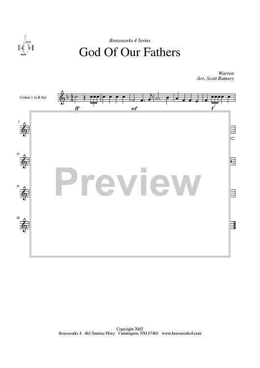Digital Sheet Music for God of Our Fathers in B-flat - Cornet 1 by Scott A. Ramsey, George Warren scored for Brass Quartet; id:318769