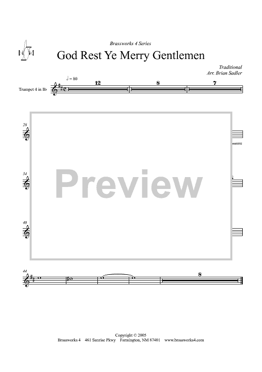 Digital Sheet Music for God Rest Ye Merry Gentlemen - Trumpet 4 in Bb by Traditional, Brian Sadler scored for Brass Ensemble; id:428490