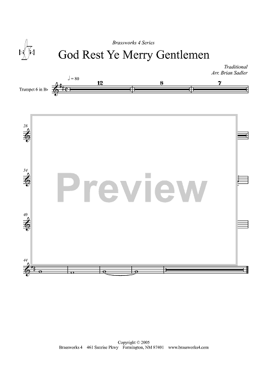 Digital Sheet Music for God Rest Ye Merry Gentlemen - Trumpet 6 in Bb by Traditional, Brian Sadler scored for Brass Ensemble; id:428492