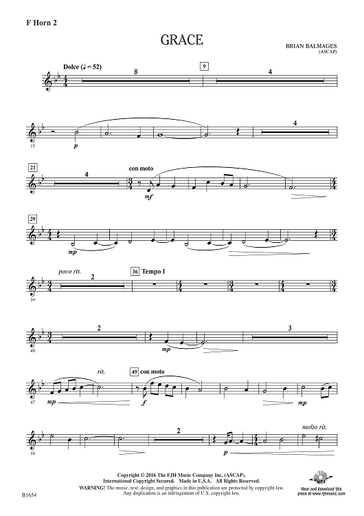 "Grace - F Horn 2" Sheet Music by Brian Balmages