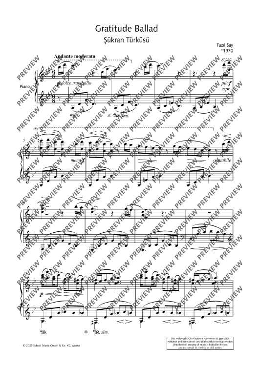 "Gratitude Ballad" Sheet Music by Fazil Say