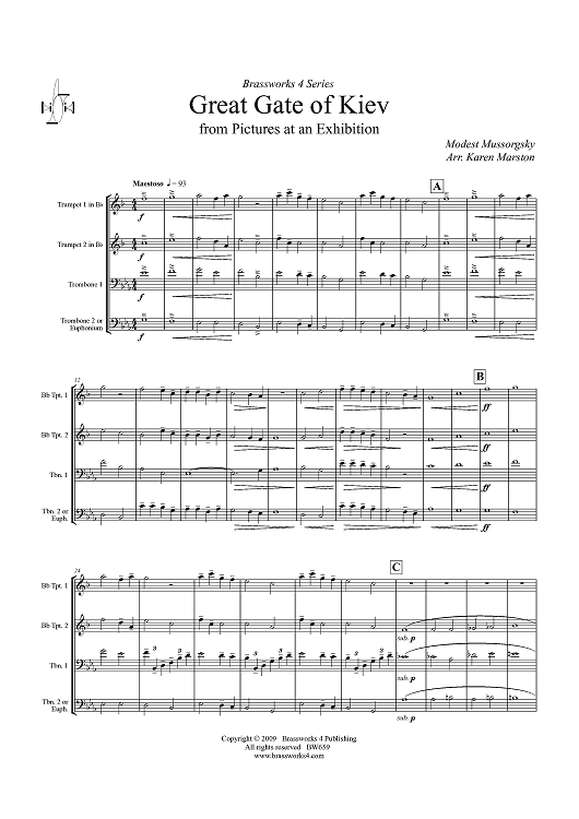 Digital Sheet Music for Great Gate of Kiev - Score by Karen Marston, Modest Mussorgsky scored for Brass Quartet; id:411316