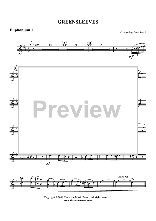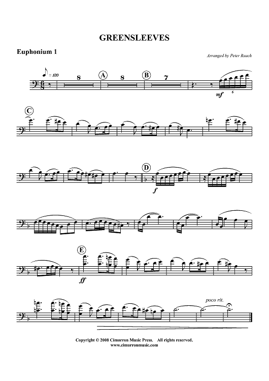 "Greensleeves - Euphonium 1 BC/TC" Sheet Music by Traditional