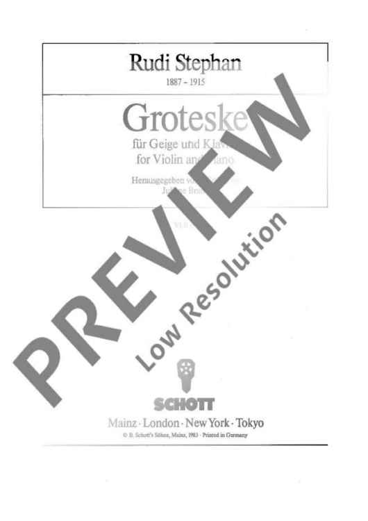 Digital Sheet Music for Groteske by Rudi Stephan scored for Violin And Piano; id:483108