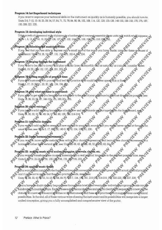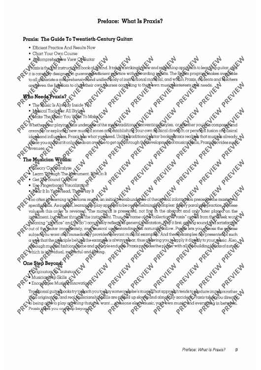 The Fingerboard Map: IntervalsThe Guide To Twentieth-Century Guitar: Praxis is the first instructional book of its kind. It takes a strikingly new and refreshing approach to learning guitar, and it is carefully designed to guarantee efficient practice with rewarding results. Establish Your Own Musical Direction: Whether your playing falls under one of the more traditional conventional styles, or whether you’re a composer and arranger or exploring new musical regions and establishing your own musical direction or personal fusion of musical ideas and influences, Praxis has what you need. Unlock The Musician Within: The name of the system ("Praxis" comes from the Greek word meaning practice and to do) accurately reflects its general orientation. Play it first, getting sound and satisfaction out of the guitar immediately, and musical understanding will naturally follow. Praxis lets you choose the precise subject you want and immediately provides relevant musical examples. And these examples are presented in such a way that the principle behind the example is always clear, thus allowing you to apply it directly to your music. One Step Beyond - Originators Vs. Imitators: Traditional guitar books try to teach you to play someone else’s music. That approach tends to produce imitators rather than originators and real musicianship skills are picked up slowly and almost by accident. Praxis takes you directly to being able to play anything that you want ... someone else’s music, your own music, and everything in between. Praxis takes you one step beyond. Efficient Learning: Guitar instruction books are traditionally written in a progressive fashion; Book 1 first, then Book 2, etc. However, the selection and sequencing of material is usually determined by the book rather than the reader, and the familiar result is that, while the book progresses, the student doesn’t. Again, Praxis reverses this. You don’t have to start with Book 1, there is no Book 1! You go where your interests