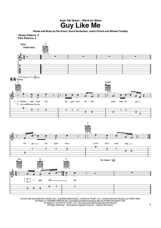 Digital Sheet Music for Guy Like Me by Pat Green, David Neuhauser scored for Easy Guitar Tab; id:372816