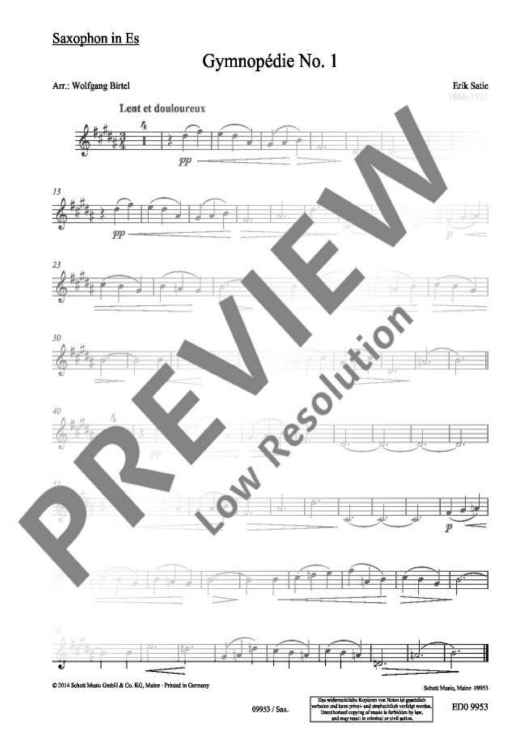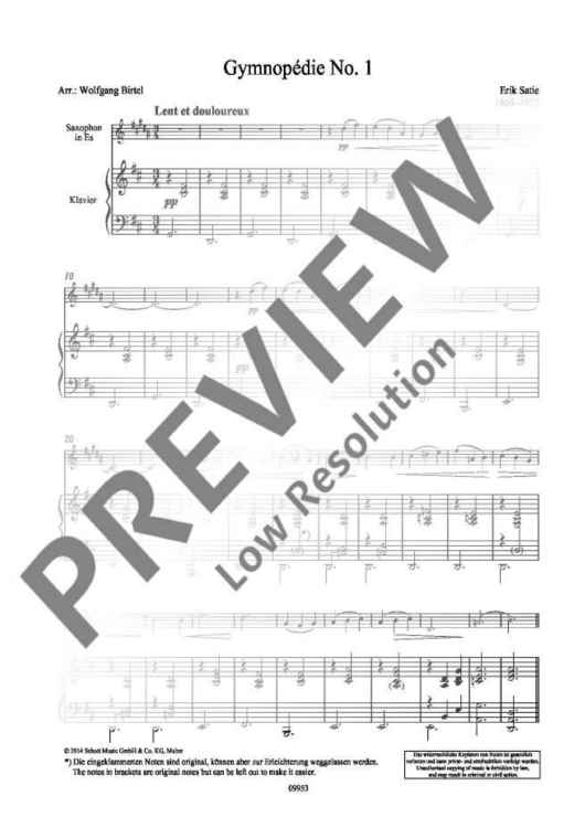 Mit einem Paukenschlag wurde die Musikwelt auf Erik Satie (1866-1925) aufmerksam: Als am 18. Mai 1817 sein Ballett „Parade“ uraufgeführt wurde, kam es zum Skandal. Die Produktion, an der auch Sergei Djagilew mit seinen „Ballets Russes“, Pablo Picasso (Bühnenbild und Kostüme), Jean Cocteau (Handlung) sowie Léonide Massine (Choreographie) beteiligt waren, entzweite die Pariser Musikwelt, machte den Komponisten aber weithin bekannt. Satie, der kaum eine fundierte musikalische Ausbildung genossen hatte und fast zeit seines Lebens in Paris lebte, entwickelte einen neuen musikalischen Stil, in bewusster Abkehr vom „Wagnérisme“ seiner Zeit. Klassische Formmodelle, neue Harmonik, Leichtigkeit im Stil, Meditatives und Clowneskes verschmolzen originell. Zum Musterbeispiel dafür sind seine „3 Gymnopédies“ von 1888 geworden, deren erste hier für ein Soloinstrument mit Klavierbegleitung arrangiert wurde: Das Musizieren dieser berühmtesten Miniatur von Satie wird damit auch Nicht-Pianisten ermöglichst – die einfache Spielbarkeit erlaubt den Einsatz auch für pädagogische Zwecke.