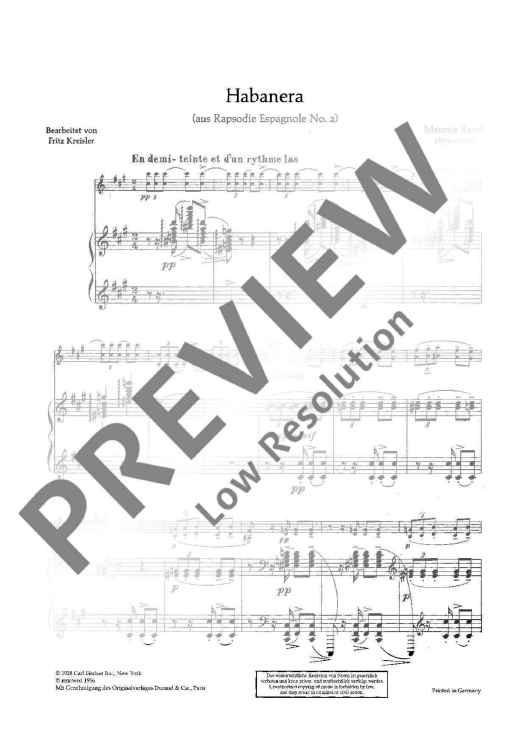 Digital Sheet Music for Habanera by Fritz Kreisler, Maurice Ravel scored for Violin And Piano; id:471474