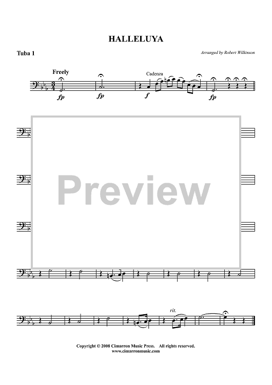 Digital Sheet Music for Halleluya - Tuba 1 by Robert Wilkinson, Traditional scored for Tuba Quartet; id:416824