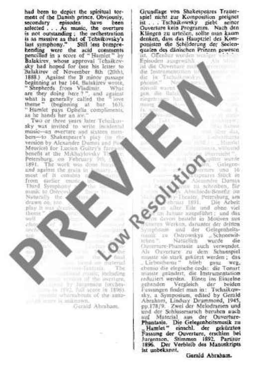 "Hamlet - Full Score" Sheet Music by Peter Ilyich Tchaikovsky