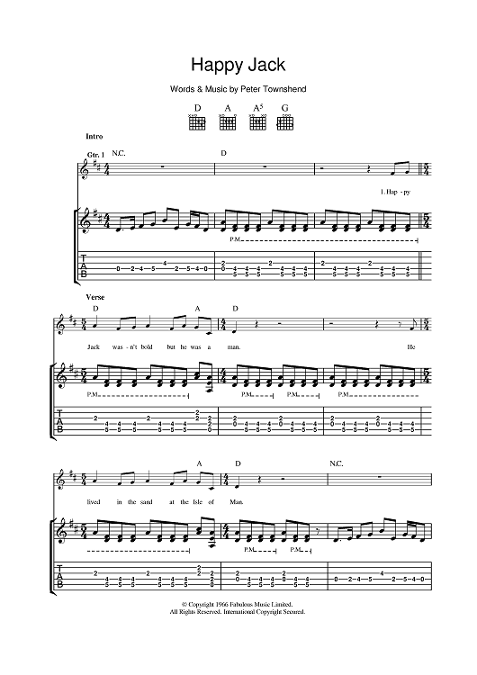"Happy Jack" Sheet Music by The Who