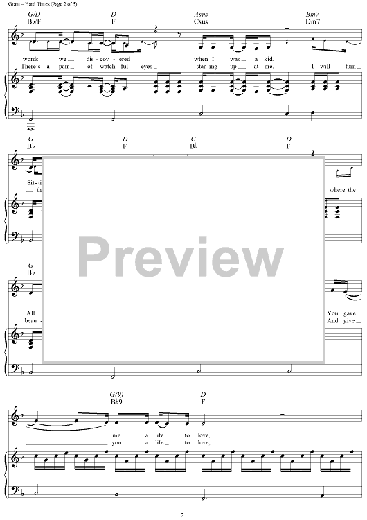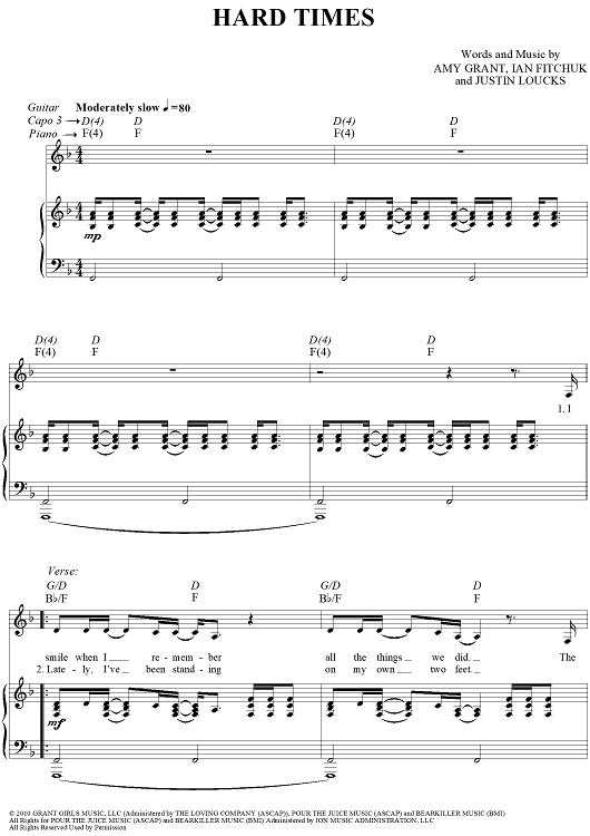 Digital Sheet Music for Hard Times by Amy Grant, Ian Fitchuk, Justin Loucks scored for Easy Piano/Vocal; id:418379
