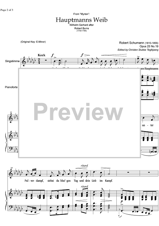 "Hauptmanns Weib Op.25 No.19" Sheet Music by Robert Schumann