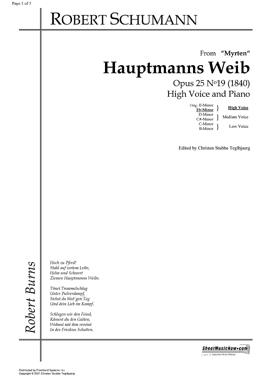 Digital Sheet Music for Hauptmanns Weib Op.25 No.19 by , Robert Schumann scored for Soprano or Tenor/Piano; id:332528