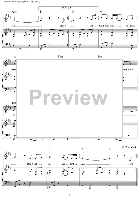 Digital Sheet Music for Have Mercy On Me by Michael Hudson scored for Piano/Vocal/Chords; id:111690