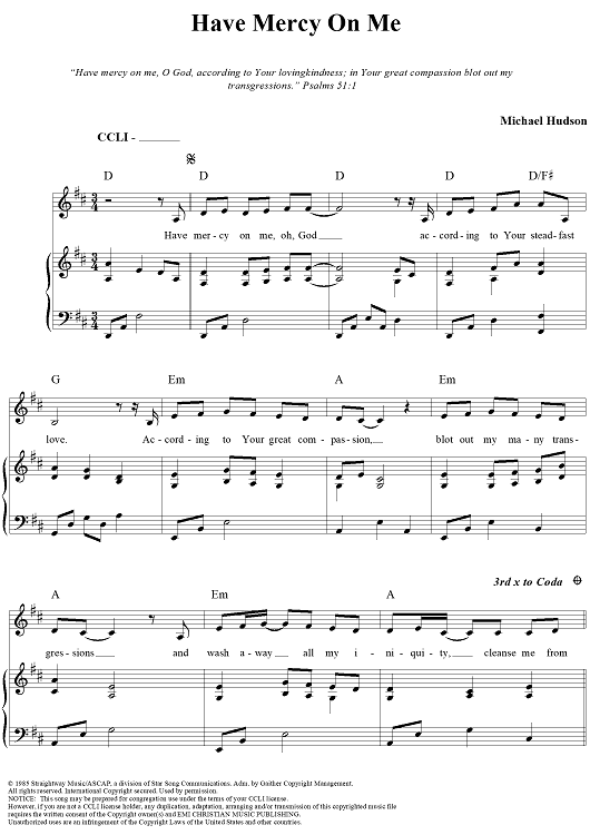 "Have Mercy On Me" Sheet Music by Michael Hudson