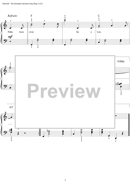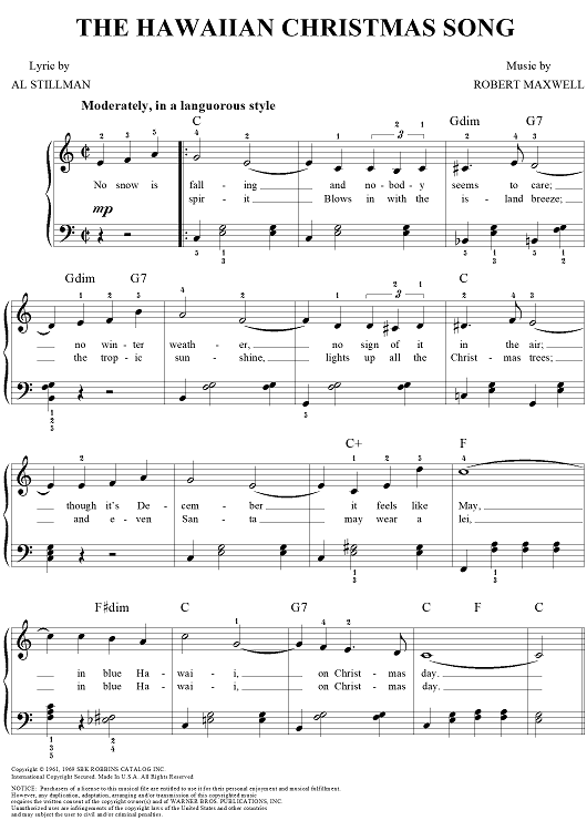 Digital Sheet Music for Hawaiian Christmas Song, The by Robert Maxwell, Al Stillman scored for Easy Piano/Vocal; id:251320