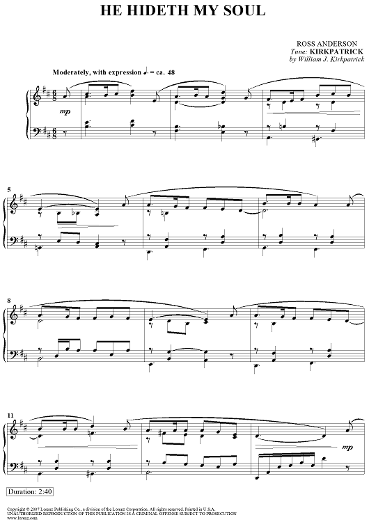 "He Hideth My Soul" Sheet Music by Ross Anderson