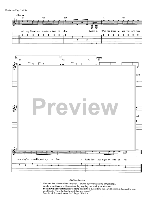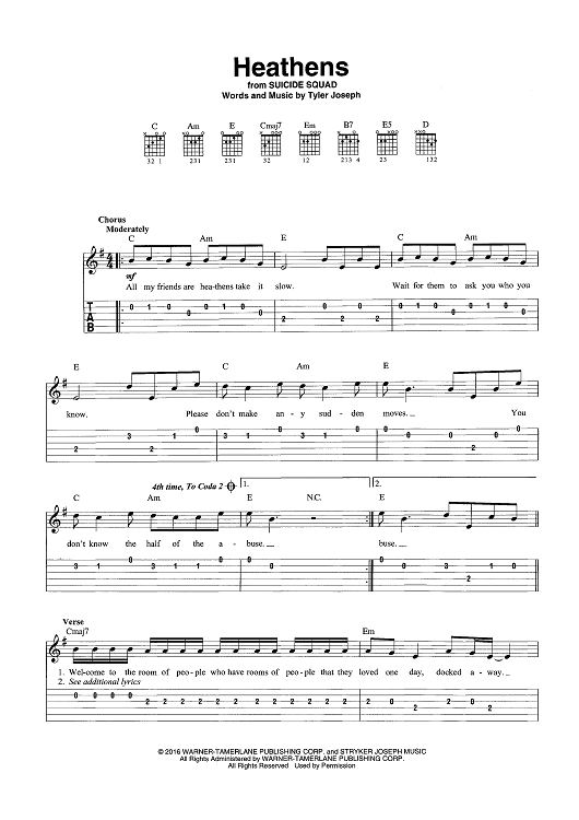 Digital Sheet Music for Heathens by Tyler Joseph, Twenty One Pilots scored for Easy Guitar Tab/Vocal; id:465610