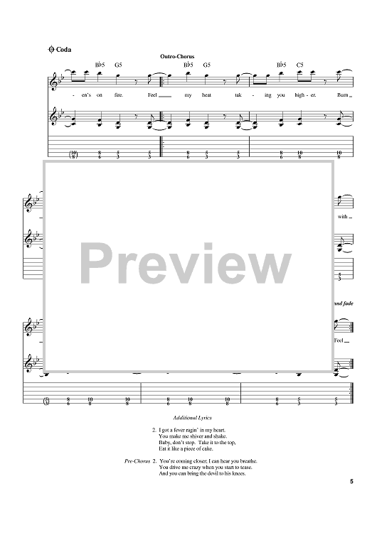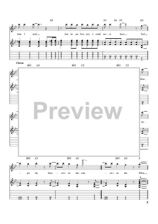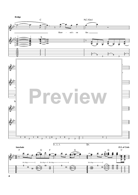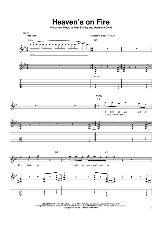 Digital Sheet Music for Heaven's On Fire by Desmond Child, Paul Stanley, KISS scored for Guitar Tab; id:384691