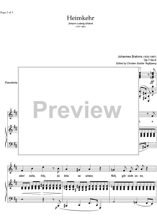 Digital Sheet Music for Heimkehr Op. 7 No. 6 by , Johannes Brahms scored for Soprano or Tenor/Piano; id:331187