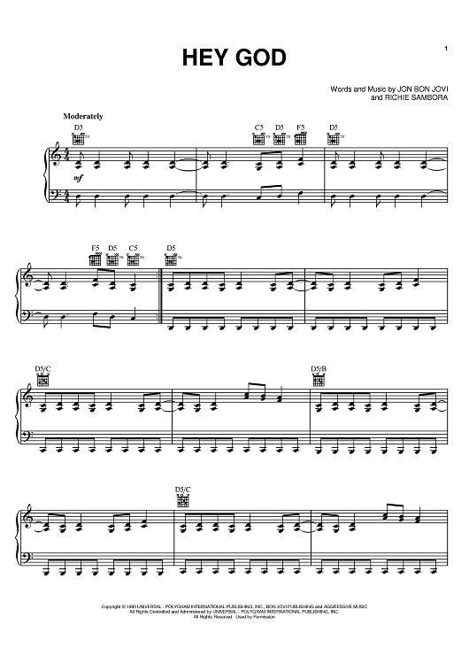 Digital Sheet Music for Hey God by Bon Jovi, Richie Sambora, Jon Bon Jovi scored for Piano/Vocal/Chords; id:383525