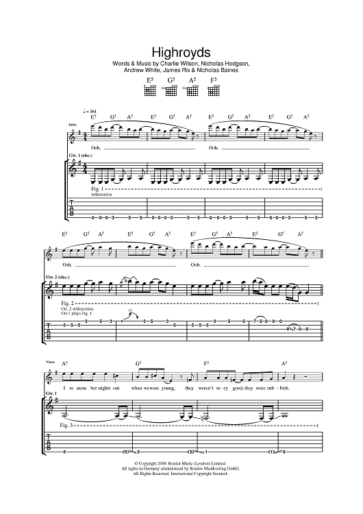 Digital Sheet Music for Highroyds by Nick Baines, Nick Hodgson, Kaiser Chiefs, Simon Rix, Andrew White, Charlie Wilson scored for Guitar Tab; id:397026